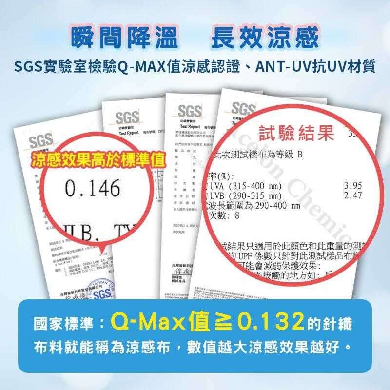 l 經 SGS 實驗室檢驗 Q-MAX 值涼感認證,真的會涼的涼感巾